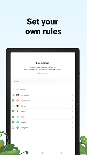 Decide where AdGuard VPN should be on: everywhere except for certain websites or on selected websites only.