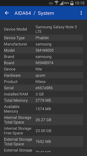 Hardware and software information utility for Android based devices. Based on the extensive hardware knowledge of the AIDA64 for Windows application, AIDA64 for Android is capable of showing various diagnostic information for phones, tablets, smartwatches and TVs, including: