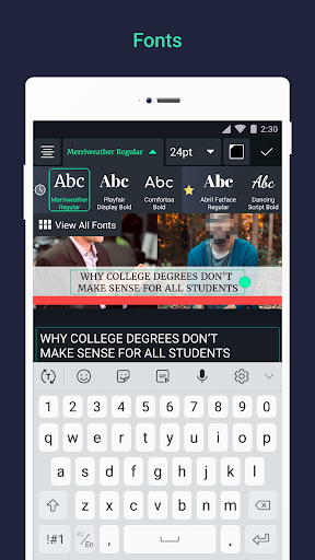 • Add text using the custom font support