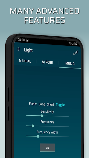 Light: Manual torch light, strobe light or a sound driven light show;