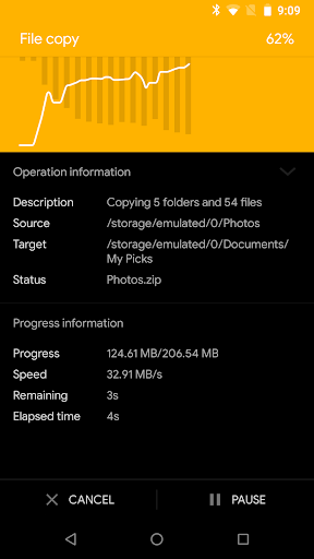 Solid Explorer can protect selected files with strong AES encryption and put them in a secure folder, which contents are unreadable for other apps. The file manager will ask for password or fingerprint confirmation when you browse the folder. Even if you uninstall Solid Explorer, the files stay on your device and are still protected.